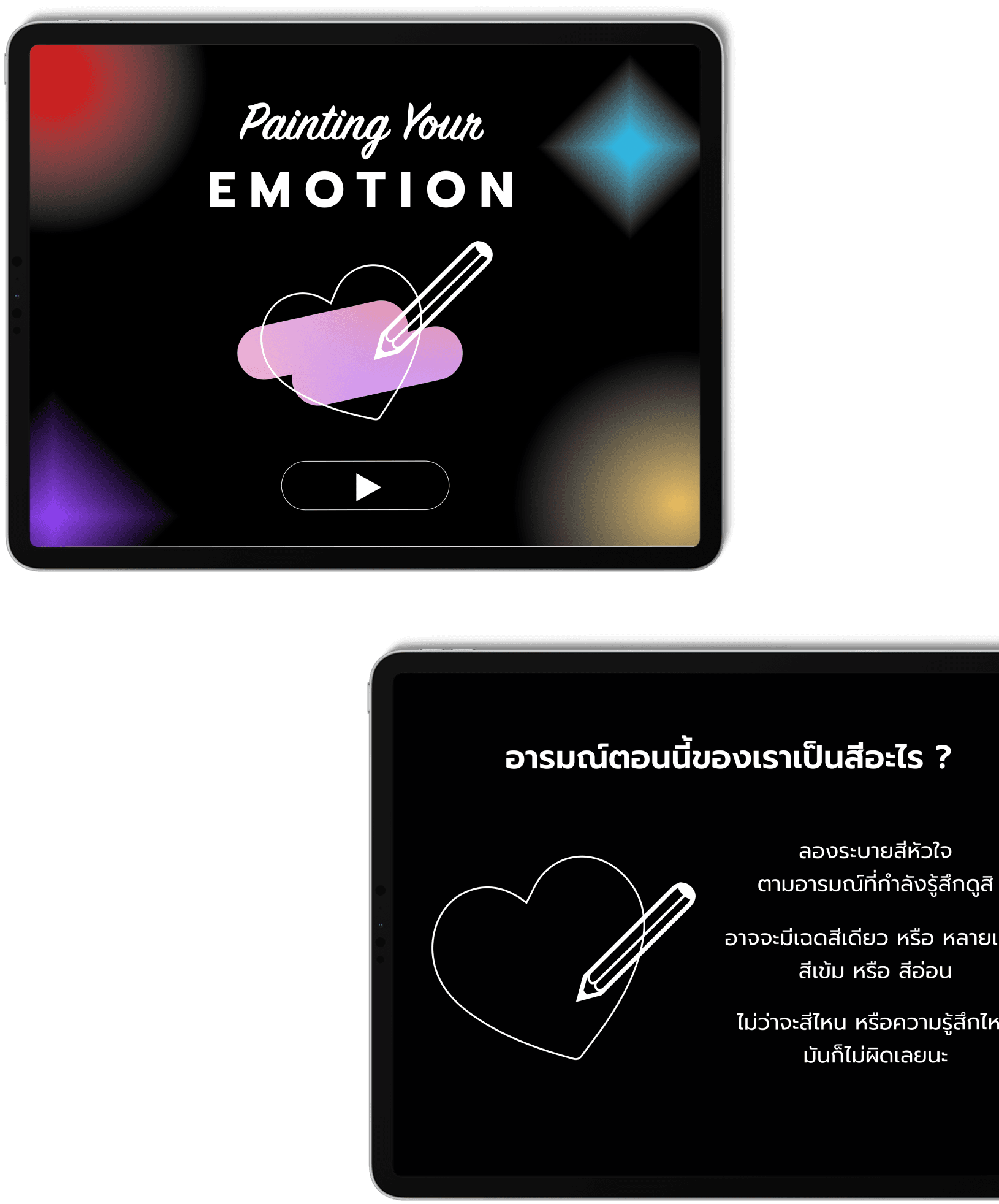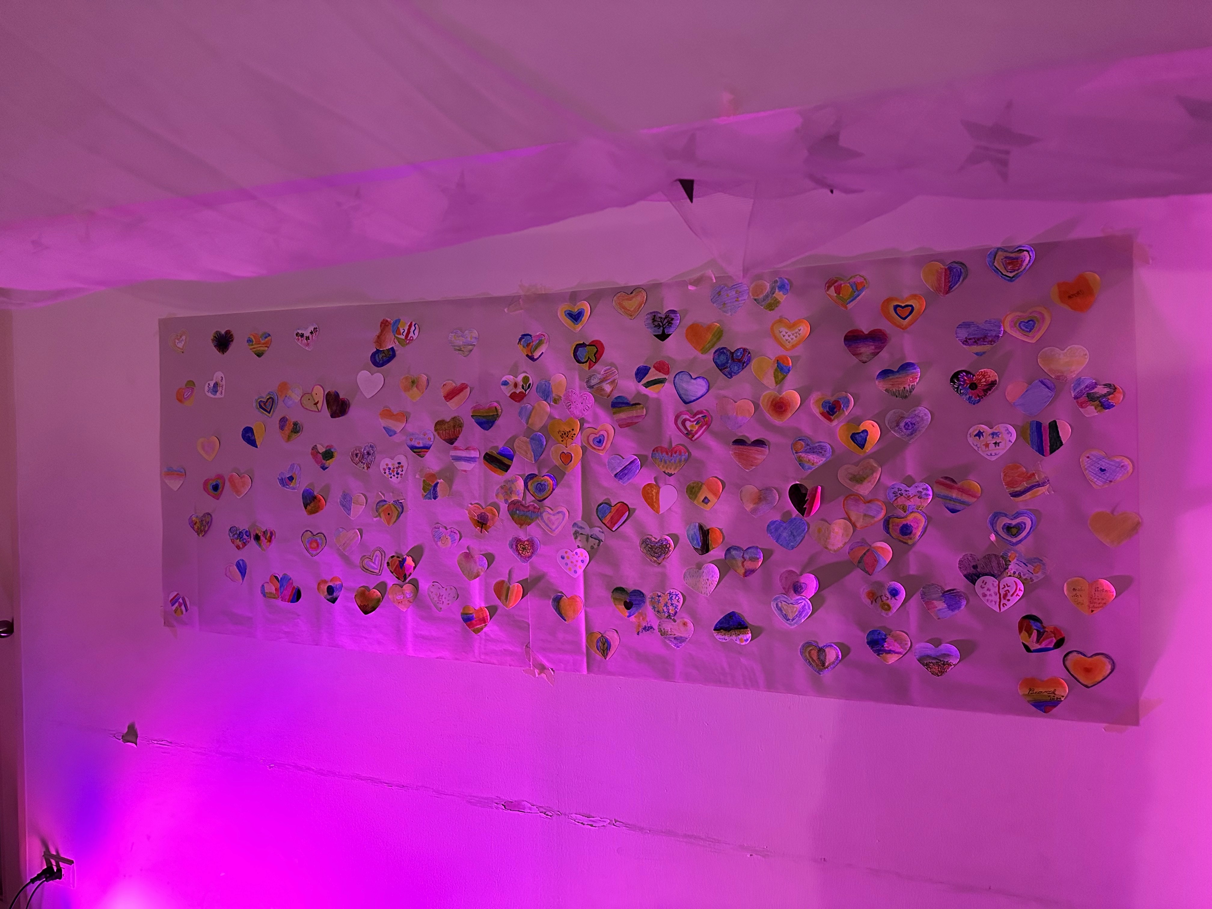 The first part involved activities that made visitors aware of their emotions during that session. By using the theory of the emotional wheel and giving examples of basic emotions, those emotions were turned into posters to print and decorate for aesthetics. The activity that visitors were able to do was paint heart-shaped paper in different colors to realize and express their emotions through art.