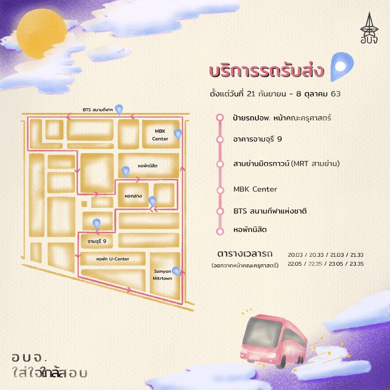 บริการรถบัสใส่ใจใกล้สอบ รอบแรก 20.03 รอบสุดท้าย 23.25