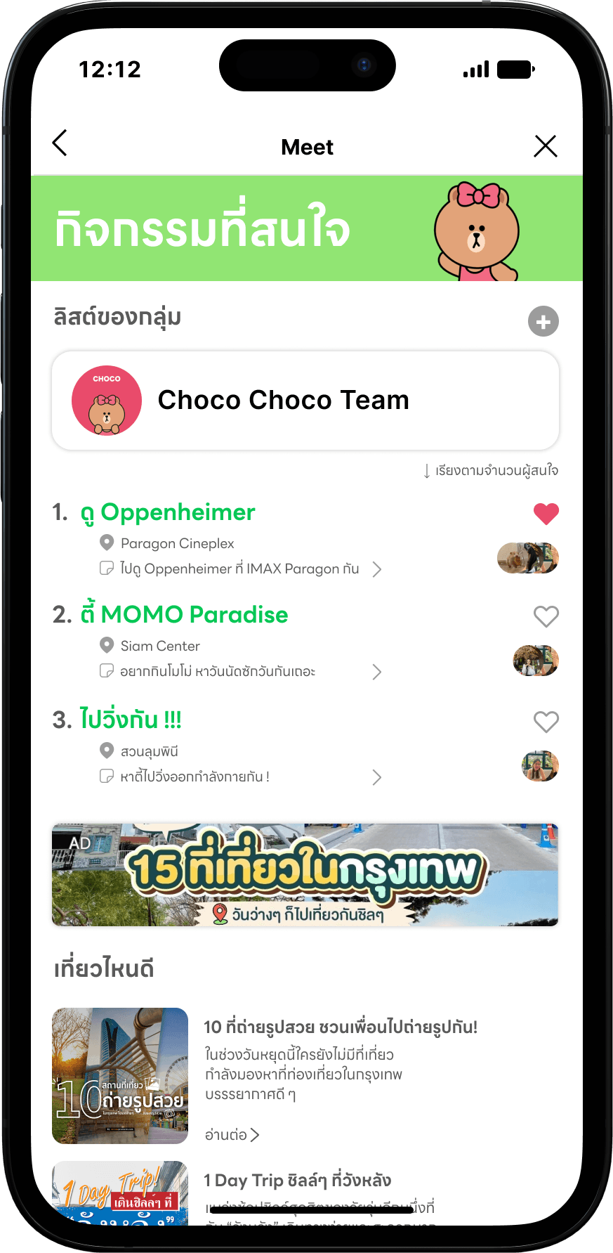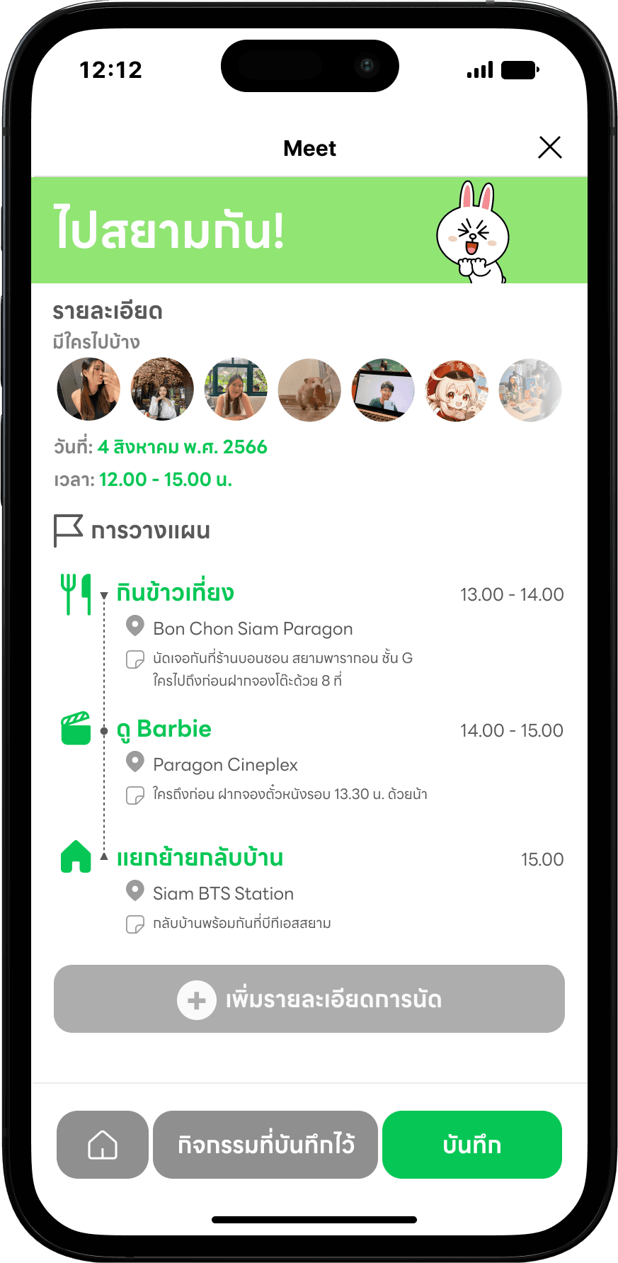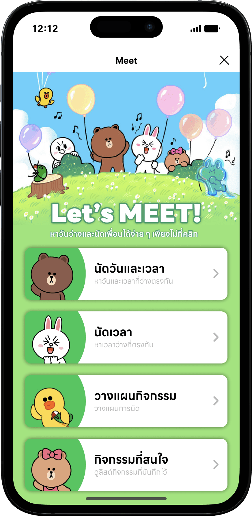 "Meet!" is one of the chatbots designed to help users find common free days and schedule appointments. As well as planning appointments on LINE. This feature will draw users back to LINE and increase application engagement.